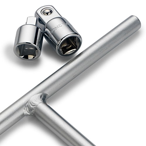 Neiko 01135A 3/8" Drive T Handle Wrench, Chromium Vanadium Steel | Long Reach | Includes 3/8" and 1/2" Adaptors