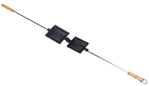 -. Feature : Heavy-duty cast iron hinged construction / 4 inch X 4 inch cooking surface, 14 inch long, wood handle / Great for burgers, sandwiches, toast snacks / Evenly distributes heat for uniform cooking / Easy to clean surface