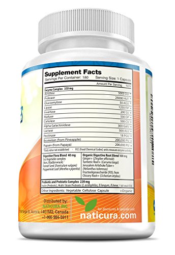 Does this sound all too familiar? Abdominal pressure, queasiness, indigestion, gas, bloating, constipation ...or just that heavy weight lodged in your gut after meals? Naticura's robust enzyme blend takes care of the heavy loads: the beefy proteins, complex carbs, dairy, gluten, fiber, fats and sugars.... simply breaks it all down painlessly to an easily digestible form. Enjoy every meal... with comfort. You can rely on our American made product, caringly crafted in our FDA inspected lab. This product is Vegan friendly, non-GMO, gluten and dairy free.