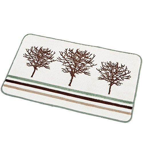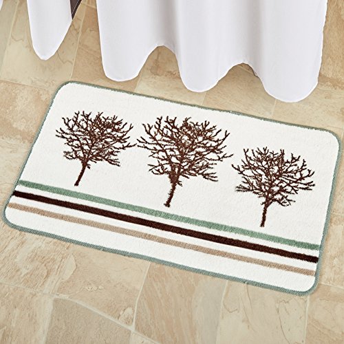 Studio : Collections Etc Publisher : Collections Etc Product Description Majestic Tree Sage Green And Brown 28"X18" Skid-Resistant Bath Rug Description This stunning bath rug has a lovely design that features a trio of bold trees atop a cream background. Three stripes on the bottom and a bound edge provide the finishing touch. Skid-resistant backing. Machine wash. Polyester; imported. 18"L x 28"W. Material Type: Polyester Shop Coordinating Items [ TIP: Type the product name and item # into the search box ] - Majestic Tree Sage Green and Brown 3 Piece Bathroom Towel Set (Item #35266)