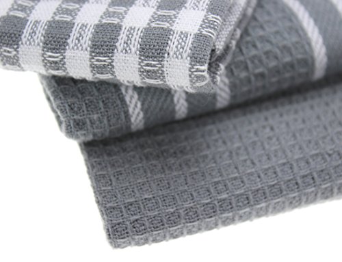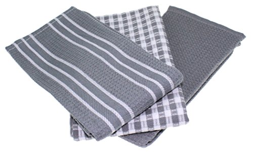 Classic Kitchen Towels, 100% Natural Cotton, The Best Tea Towels, Dish Cloth, Absorbent And Lint-Free, Machine Washable, 18 x 25 Inch, 3 Pack, White With Grey Stripe
