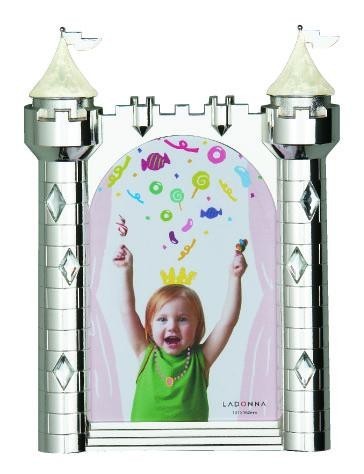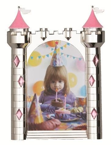 遊び心いっぱいのお城フレームです。 製造国:中国 素材・材質:亜鉛合金、シルバーメッキ、アクリル、エポキシ 商品サイズ:142×205mm 仕様:内寸:104×155mm窓寸:90×139mm写真サイズ:ポストカード判縦置き専用裏面/カラー:グレー、素材:ベルベット【商品名】ラドンナ ベビーフォトフレーム お城フレーム 142×205 ホワイト・MB48-P-WH