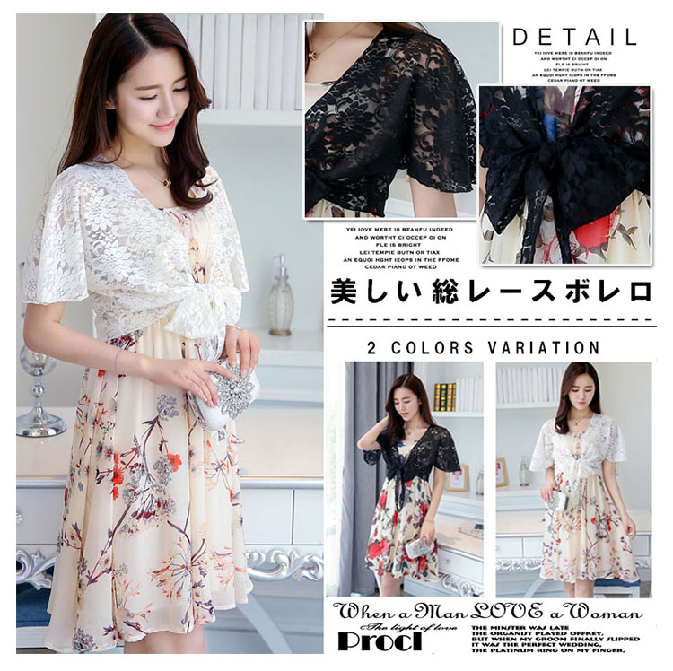 | 美しい総レースボレロ着回し力バツグンのベーシックデザイン着る人を選ばない懐の広さと扱いやすさが魅力ドレスからカジュアルまで使えて | |