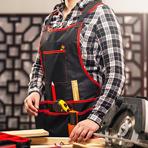 NoCry Professional Canvas Work Apron with 16 Tool Pockets, Fully Adjustable, Waterproof & Protective, Black