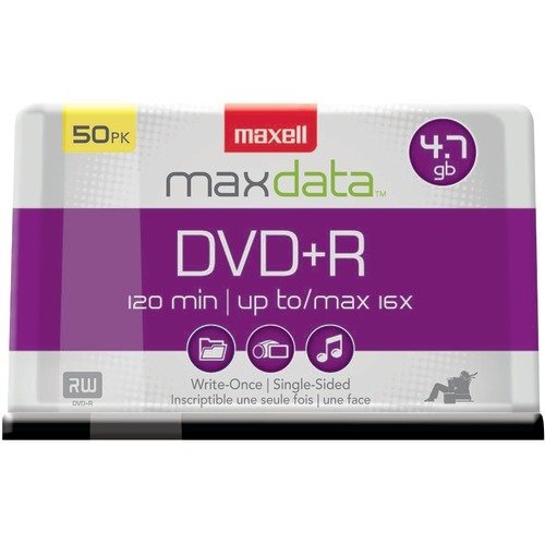 Studio : Maxell Publisher : Maxell Binding : Office Product Product Description Maxell DVD R Discs, 4.7GB, 16x, Spindle, Silver, 50/Pack Preserve memorable moments and important files, or share them with business associates, friends, and family. High-speed recording allows discs to be burned quickly and efficiently. Large capacity is ideal for personal videos, multimedia presentations, archival backups, digital image storage, and more. Enjoy secure, unalterable data storage with write-once format. Superior archival life ensures performance for years to come. Read compatible with DVD playback devices for easy sharing. Disk Type: DVD R; Capacity (Video): 120 min; Recordable Format: "Write Once" format--may not be altered once data is written to the disc.; Capacity Range (Data): 4.7 GB. Large capacity. Manufacturer's limited lifetime warranty. 0