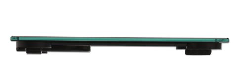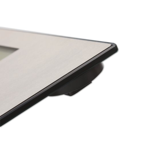 Built to accommodate up to approximately 400 pounds (180 kilograms), this tempered-glass platform with a 0.8-inch profile is wrapped in stainless steel for a clean, sleek look.