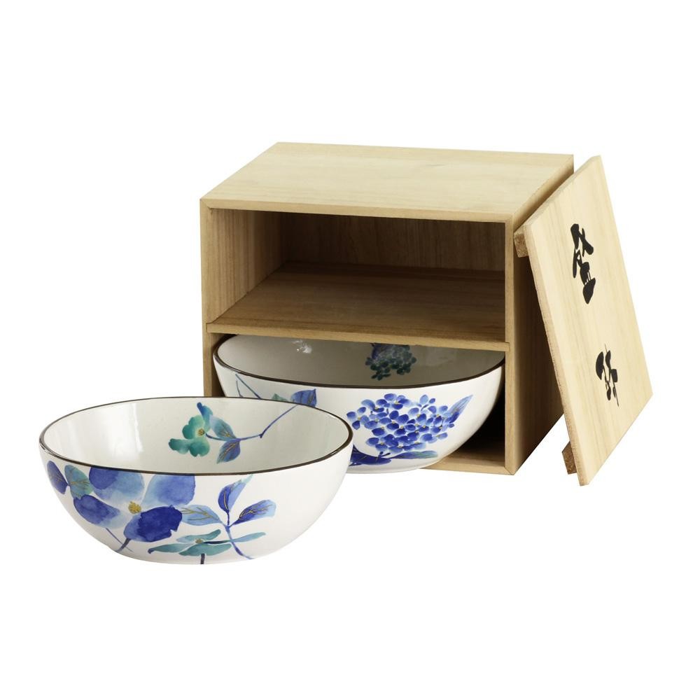 初夏に咲く花水木、紫陽花を描きました。2つの鉢を木箱に入れたセットです。 製造国:日本(木箱:中国) 素材・材質:鉢:磁器木箱:天然木 商品サイズ:鉢:16×14×H5.7cm、木箱:14.6×17.7×H15.5cm 仕様:木箱入り食器洗浄機・電子レンジ使用可 セット内容:鉢×2 ※サプライヤー直送品 ご注文後3~4営業日後の出荷となります【商品名】花蒼 組盛鉢 03715