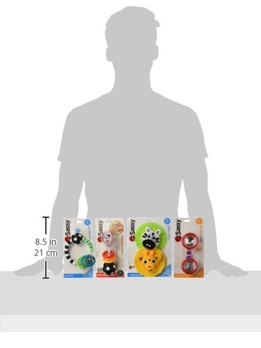 Sassy's Newborn Gift Set includes 5 Pieces: Hello Baby! Phone, Beginning Bites, Ring Rattle and Spin Shine Rattle. Each toy inspires vision and hearing in their own unique way. Hello Baby! Phone allows baby to interact with and imitate mom; Beginning Bites are great for baby when teething for the different textures, and rattles inspire hearing.Feature
