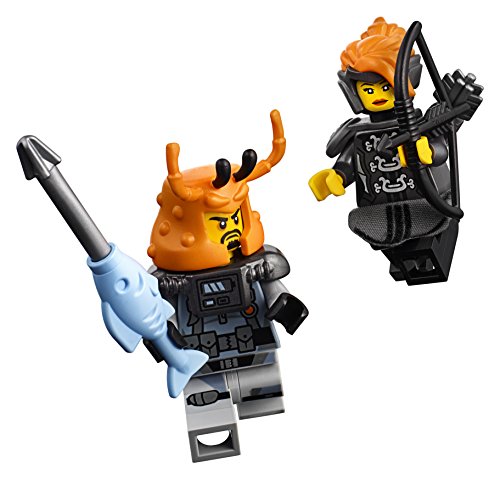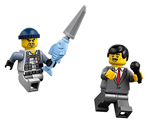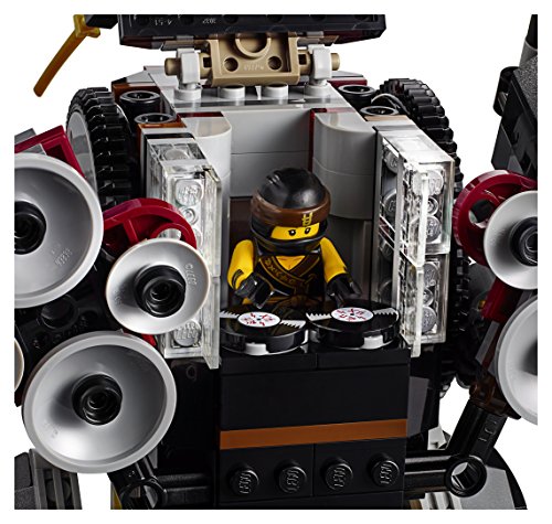 Fire ‘soundwaves’ from Cole’s Quake Mech to save TV reporter Fred Finley from the shark army, with this all-action THE LEGO NINJAGO MOVIE set. The highly posable, uni-wheel Quake Mech features an opening minifigure cockpit, fold-up shoulder ‘loudspeakers’ with 8 hidden ‘soundwave’-shooting flick missiles, fully posable arms with gripping fists and a big wheel with stabilizer. This cool toy for kids also includes 5 minifigures with assorted weapons to intensify the role-play battles.Feature