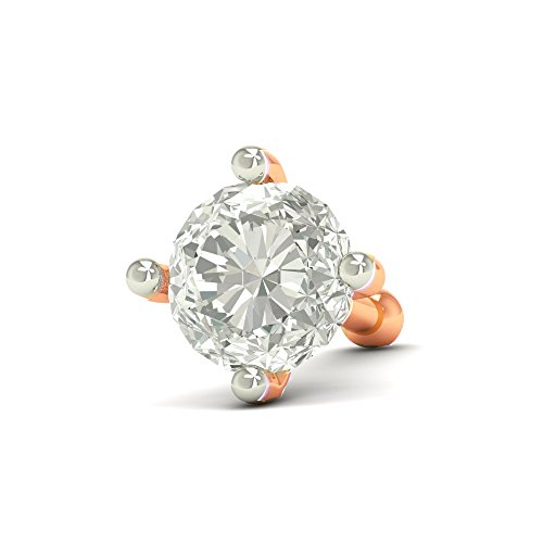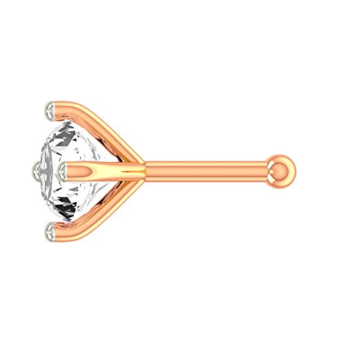 -. Title : 1.5mm Round-Cut-Diamond and 18K Rose Gold Nose Ring/ Pin/ Stud