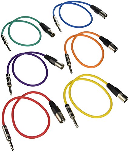 Seismic Audio SATRXL-M2BGORYP 2-Feet XLR Male to 1/4-Inch TRS Patch Cables - Multiple Colors