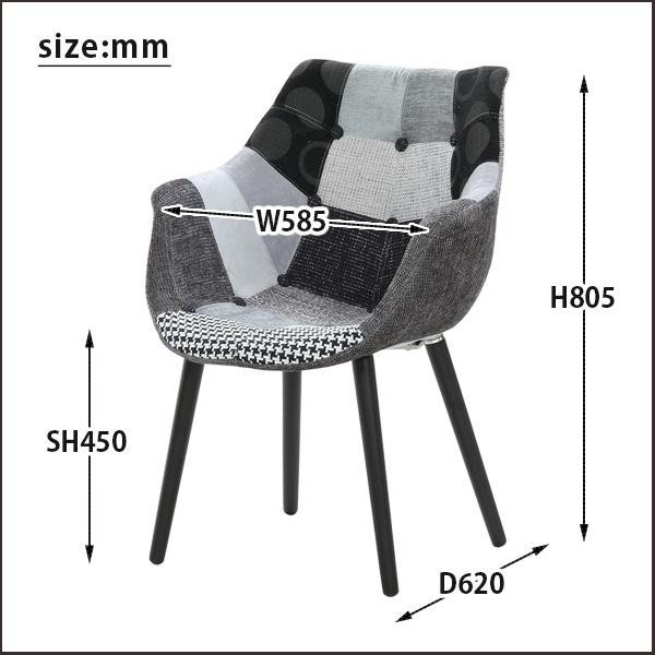 シックなモノトーンでとてもおしゃれなチェア。お部屋のアクセントになります。 製造国:中国 素材・材質:ポリエステル、天然木、スチール 商品サイズ:W585×D620×H805(SH450)mm 仕様:組立品耐荷重:約80kg 付属品:組立用部品、組立用工具 ※サプライヤー直送品 ご注文後3~4営業日後の出荷となります【商品名】パッチワーク デザイナーチェア ブラック 65016