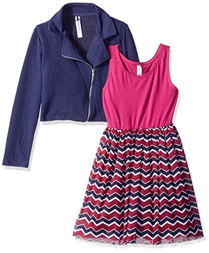 Beautees Big Girls' 2 Piece Moto Jacket Over Dress, Navy, 10