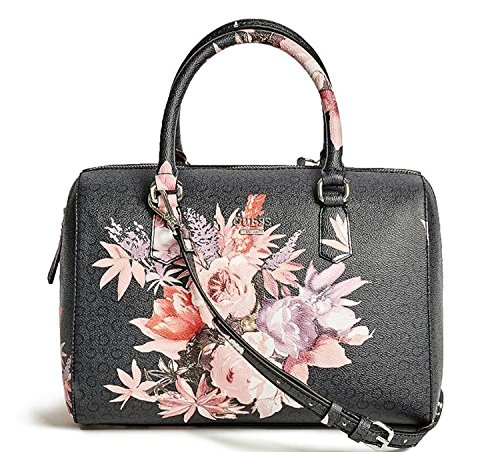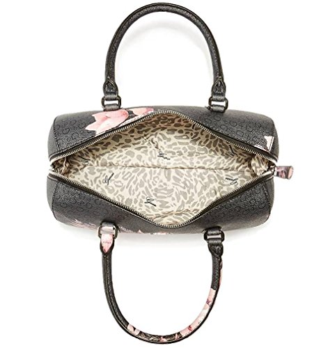 Product Description Faux-leather; Silver-tone hardware; Exterior features beautiful floral detail Lined interior with a back wall zip pocket and multiple slip pockets Measurements: Width: 11 in Depth: 4 in Height: 9 1?2 in Strap Drop: 23 in Handle Drop: 6 in 0