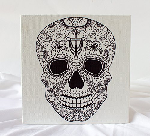 • This canvas print features cute hand drawn Sugar Skull doodle by Prajakta P. The high quality print on canvas will give you crisp Black outlines to color in. This can make a great Halloween decor created by you!