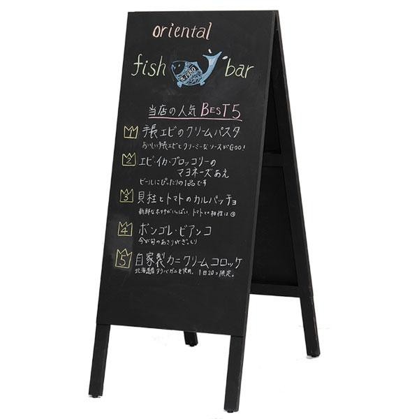 レストランやカフェなどに最適なA型黒板です。店頭でのメニュー表示や告知など様々な用途にお使いいただけます。