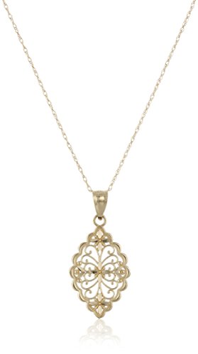 14k Yellow Gold Diamond-Cut Filigree Pendant Necklace, 18"