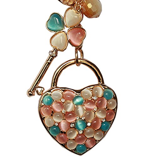 High quality opal, crystals and durable metal make up the chain. The colors are rich and the crystals sparkle. This beautiful and luxury charm will make sure that everyone's eyes are on you.