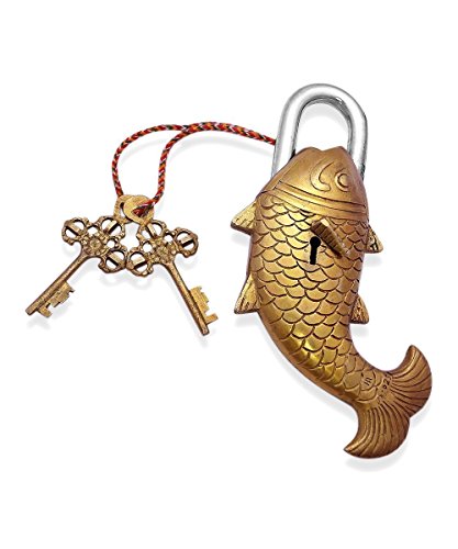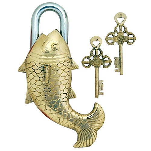 Purpledip Fish Shaped antique Handcrafted brass padLock for Security,Big sized (10277)