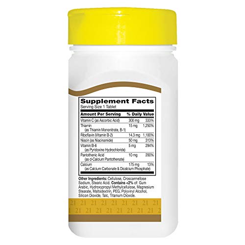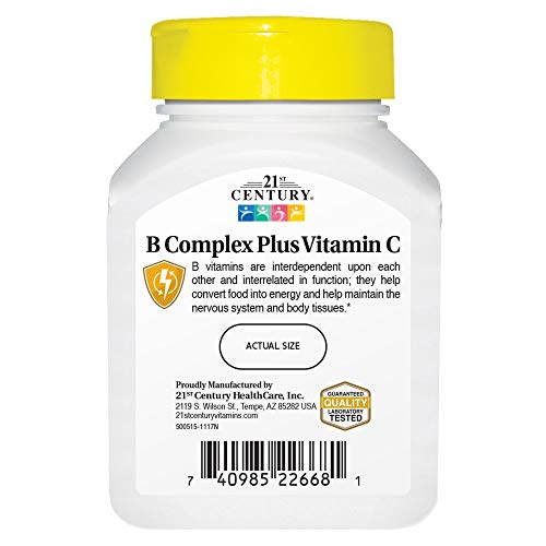 21st Century B Complex w/C 100 Tabs are interdependent upon each other and interrelated in function; they convert food into energy and help maintain the nervous system and body tissues. Vitamin C is an important antioxidant nutrient that helps neutralize free radicals which may cause cellular damage in the body. Vitamin C also supports a healthy immune system.Feature