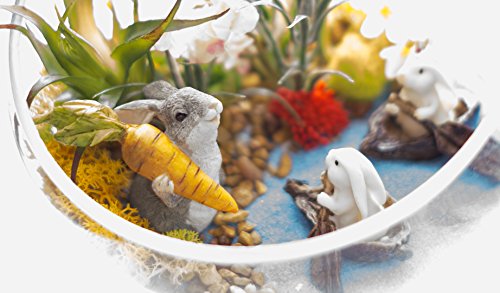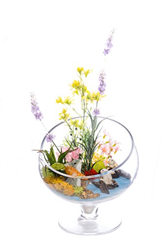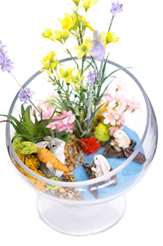 - EVERYTHING INCLUDED- Custom terrarium design kit comes with everything pictured- (1) Life Like Artiifical Silk Airplant, Natural Sand, Blue Sand, Stones, Lavender Silk Flowers, Silk Red Sedium Flowers, Pink SIlk Forget Me Not Flowers, Moss - Lime Green, Moss - Orange, (3) Top Collection Miniature Bunny Figurines - and a Glass Terrarium Container