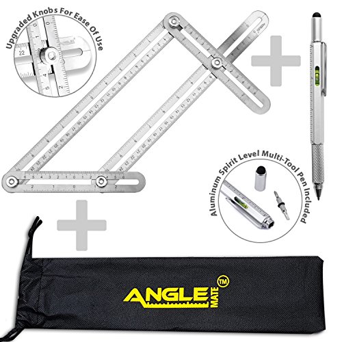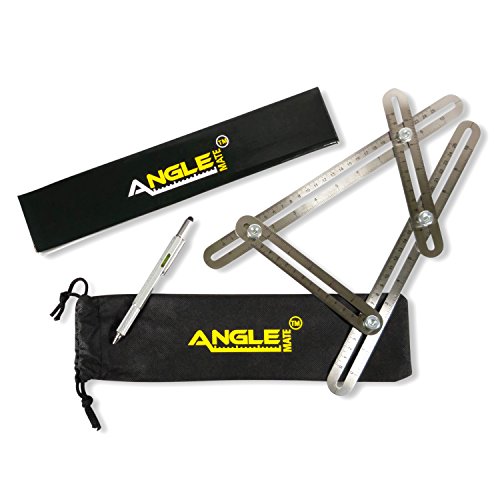 Angle Mate™ 410 Stainless Steel Professional Grade Angle-izer Template Measurement Tool with Spirit Level Aluminum Multi-Tool Pen. Durable Upgraded Metal Angleizer Built To Last