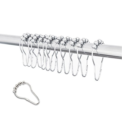 Enflex Shower Curtain Hooks, Premium Rustproof Stainless Steel Rollerball Shower Curtain Ring Hooks For Bathroom Shower Rod, Set of 12