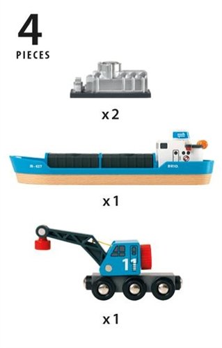 -. Feature : Das beliebte Containerschiff transportiert Frachten sicher über alle Wasserwege. Mit dem Kranwagen kannst du das Schiff be- und entladen . / Ein Containerschiff mit Kranwagen zum Be- und Entladen . 4 Teile.
