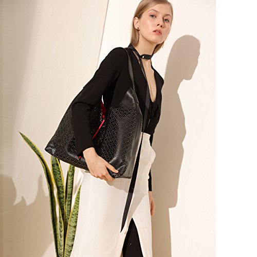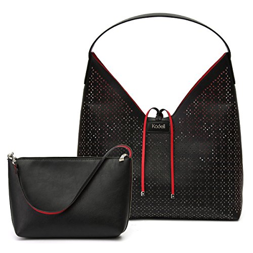 Kadell Women Leather Tote Bag Handbags Hollow Out Purse Shoulder Bag 2 PCS Set