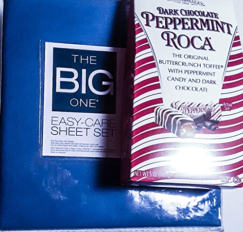Queen Sheet Set, Bright Blue Deep Pockets 17", Easy Care PIMA Cotton Percale, Full Elastic on Fitted Sheet, The Big One, Plus Christmas Candy (Dark Chocolate Peppermint Roca)