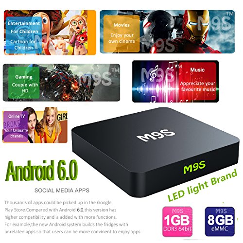 -. Feature : 【Artful Design】 9cm*9cm*2cm , as big as palm size ,45% smaller and 50% lighter than m8s,easy to put it into your pocket when you go outside with your family or visit your friend home to have wonderful TV time with them / 【Fast Speed】Come with newest Android6.0 operation system,powered by high performance CPU Amlogic S905 Quad core ARM Cortex-A53 & 64 bits, up to 2.0 GHZ and GPU Quad-Core Mali-450 at 600MHz+, gives you ultra-fast running speed and professional image processing ability / 【High resolution 】Built-in HD 2.0b transmitter and supports HDR10 and HLG HDR processing,enables you to watch any 3840*2160(4Kx2K) ultra hd movies, 4 times than 1080p resolution, great time to high-definition visual experience / 【A lot of Application 】Online intall apps: hot games,pop music,news, stock market, online shopping,education,sports channel,etc, offer you more new enjoyment to free movies, tv shows from all over the world / 【Convenient to Set up 】Connect with your mouse and keyboard to help you operate more convenient.A great box with fantastic compatibilities to meet the most demanding entertainment expectations!