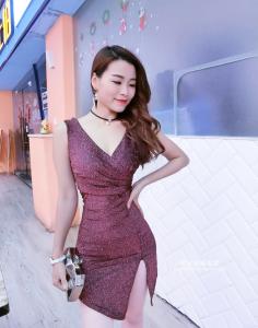 タイトミニ丈ワンピース スリット 深Vネック セクシー ラメドレス ナイトドレス プチプラ ノースリーブ