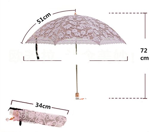 -. Feature : SPF: UPF>50+ / Aus 100% Polyester und Wasserdicht / Durch einen starken Mittelstock aus Aluminium und strapazierfähigen Rippen, ist der Schirm in der Lage, Winden ohne Umklappen standzuhalten. / Dieser Schirm hat ein rutschfest gummierten Griff, um die Ermüdung der Hand und des Handgelenks zu verringern, wenn Sie eine lange Wanderung im Sturm machen. / Bedruckt mit Spitze luxuriösen Mustern im Boheme-Stil, wird Sie dieser Schirm sicher im düsteren Wetter erfreuen