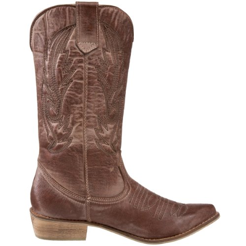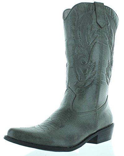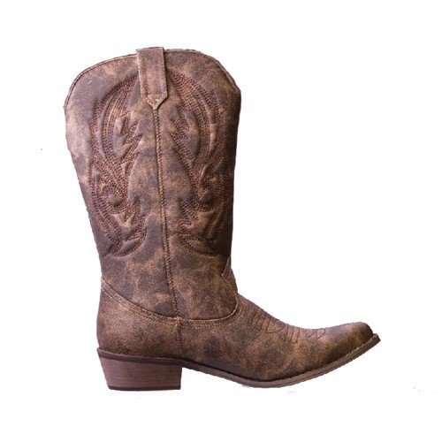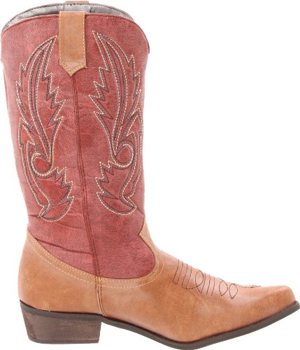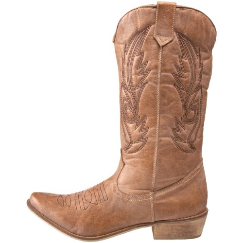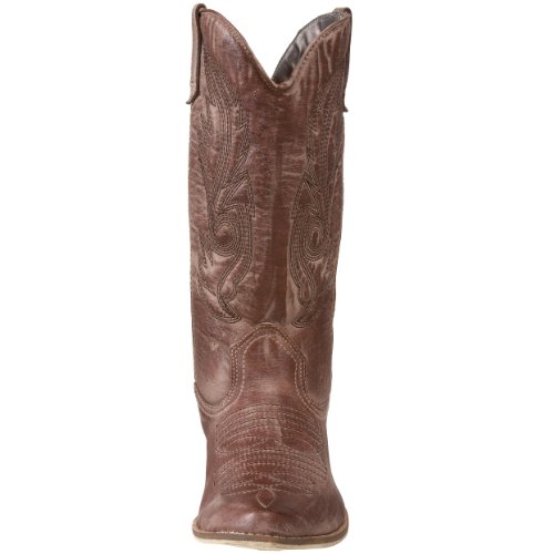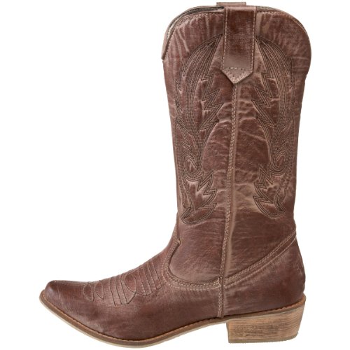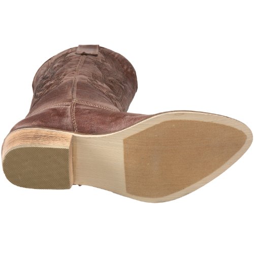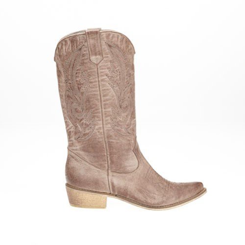 Amazon.com Product Description Look both tough and stylish with the Gaucho boot! The smooth upper features western stitching over the vamp and along the shaft, while tabs at the top allow you to pull on with ease. A traditional stacked heel will give you a comfortable boost that will pair nicely with denim or skirts. Giddyup!