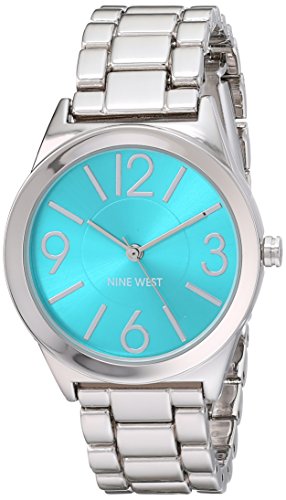 -. Title : Nine West Women's NW/1663TQSB Turquoise Sunray Dial Silver-Tone Bracelet Watch