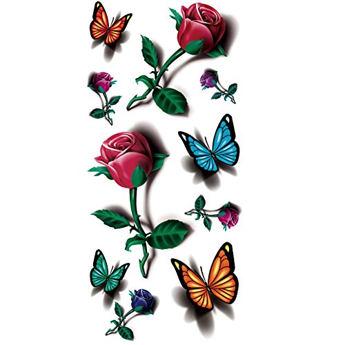 TAFLY 5 Sheets 3D Ladies Body Art Sticker Sexy Butterfly Rose+Butterfly Temporary Tattoo