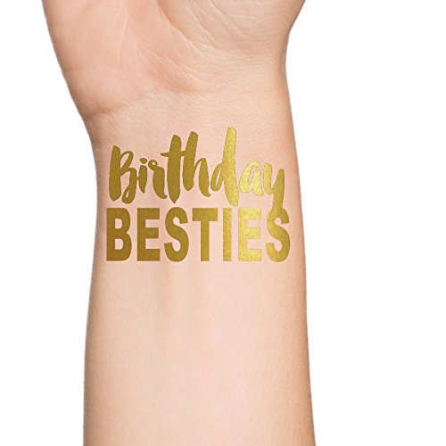 Metallic Gold Birthday Besties Birthday Party Temporary Tattoo (Set of 3)