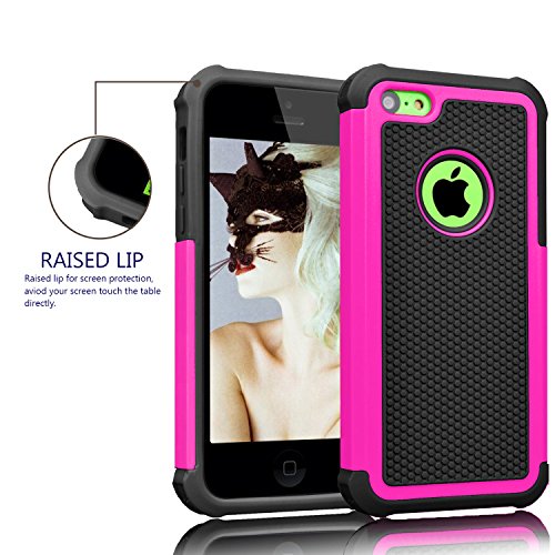 iphone 5c Case, Akimoom [Jade Series] TPU Silicone Luxury Defender Nonslip Shockproof Scratchproof Dustproof Hybrid Dual Layer Hard Protective Slim Case Cover for iphone 5c(Black/Rose)