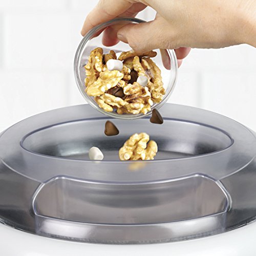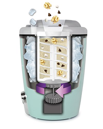 Welcome to the fast and easy way to make 4-quarts of delicious, old fashioned ice cream, frozen yogurt, or gelato. With a unique bottom-drive motor, the top of this ice cream bucket is easily accessible for filling with salt and ice, while a separate chute makes it easy to add your favorite ice cream toppings. Add ingredients like cookie dough, nuts, candy pieces, and more to customize your creation.Feature