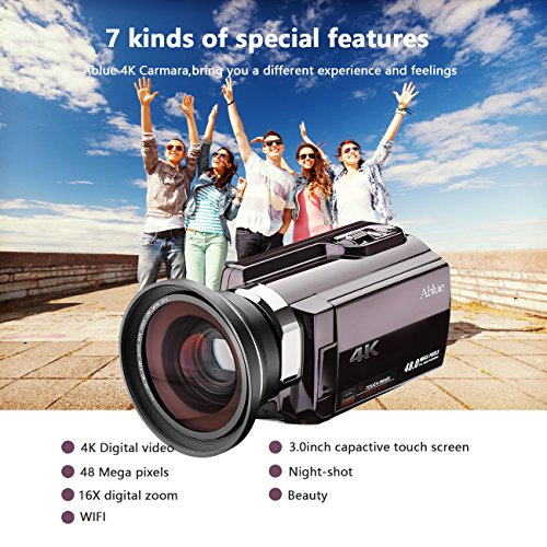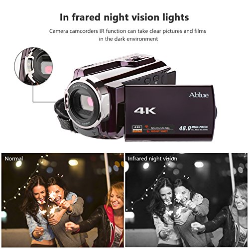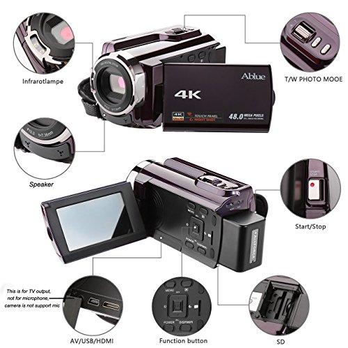 Ablue Camcorders- 4K 2880*2160(24FPS), 3.0 capactive LCD, 270 degrees rotation with Touching Screen, HDMI output. Supports standard tripod and SD/SDHC/TF card(64GB max)