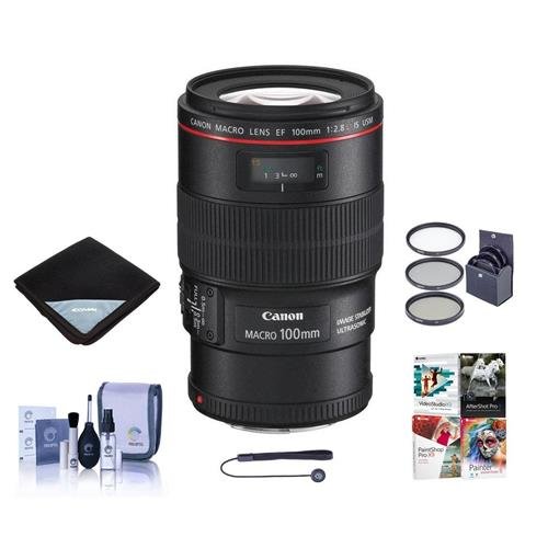 Canon EF 100mm f/2.8L IS USM Macro AF Lens - Front Lens Cap E-67U - Rear Lens Cap E - Lens Case LP-1219 - Lens Hood ET-73 - Canon 1 Year USA Warranty - 67mm Filter Kit (UV/CPL/ND2) - Lens Cap Leash - Professional Lens Cleaning Kit - Lens Wrap (15x15) - Special Professional Software Package