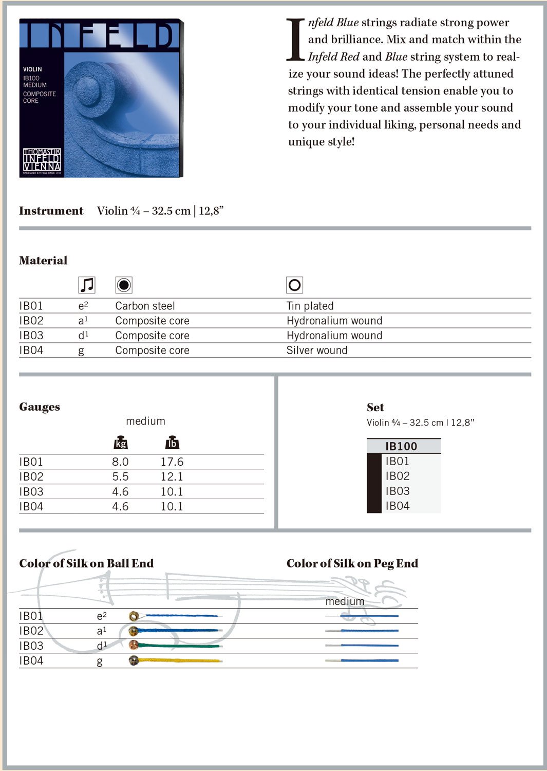 Thomastik-Infeld IB100 Blue Violin Strings Complete Set IB100 4/4 Size Synthetic Core