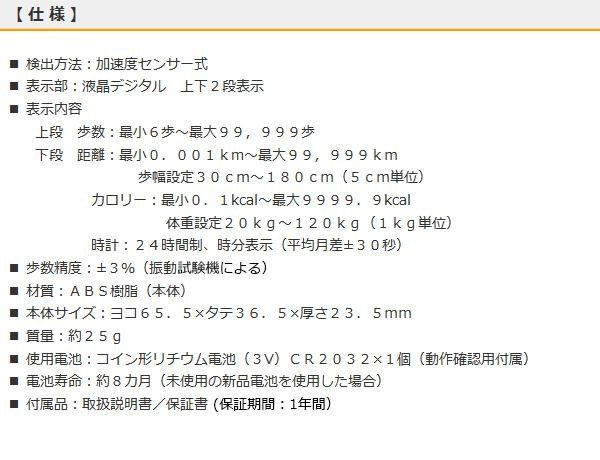 fk094igrjs前後左右に多少傾けて装着(傾斜30度以内)しても正確に歩数をカウントします断続的な動きや雑振動をカウントしないように設定しています サイズ 個装サイズ:7×15×3cm 重量 個装重量:40g 製造国 中国 便利なベルトクリップ固定式 前後左右に多少傾けて装着(傾斜30度以内)しても正確に歩数をカウントします断続的な動きや雑振動をカウントしないように設定しています ご注文後3~4営業日後の出荷となります
