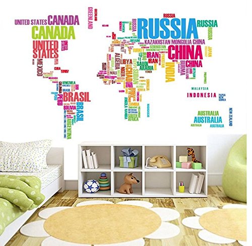 Clever Decal Designs Fabulous Large World Map PVC Wall Stickers Original Creative Colours Letters Map Wall Art Office Bedroom Home Decorations Wall Decals (Colorful) B019IZOODG