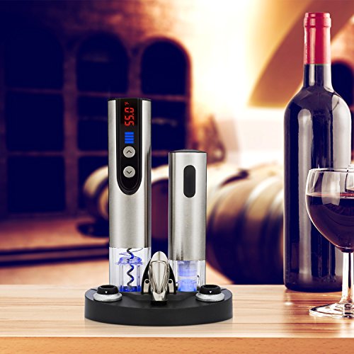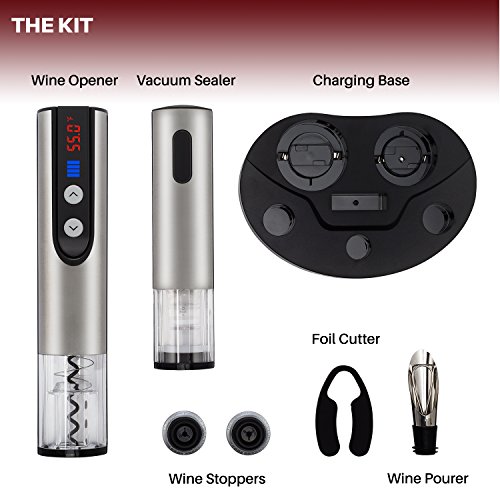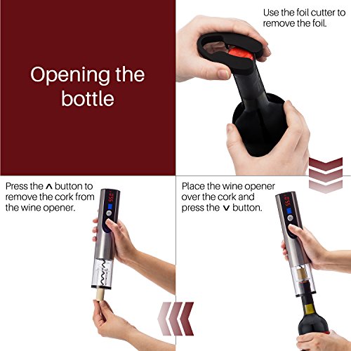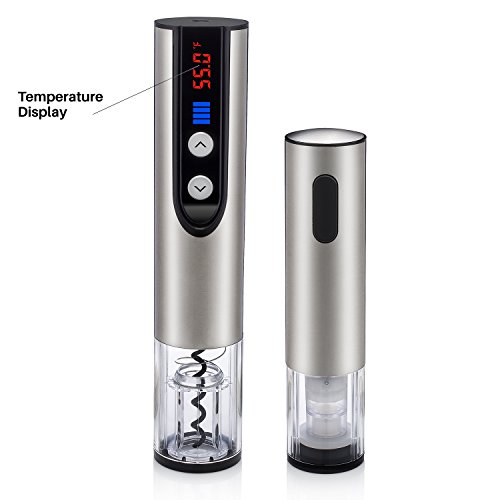 Convenient: Cordless electric bottle opener removes the cork in an instant; LED display shows wine temperature and power capacity