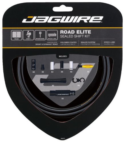 Studio : Jagwire Publisher : Jagwire Binding : Sports Product Description Jagwire Road Elite Sealed Derailleur Cable Housing Sets Speed-lube ultra slick lubricant enchances performancePrecise, compressionless shifting performance1700mmPolymer coated cables dramatically reduce friction Item SpecificationsColorBlackEnd TypeShimano/SramHousing Diameter5 0