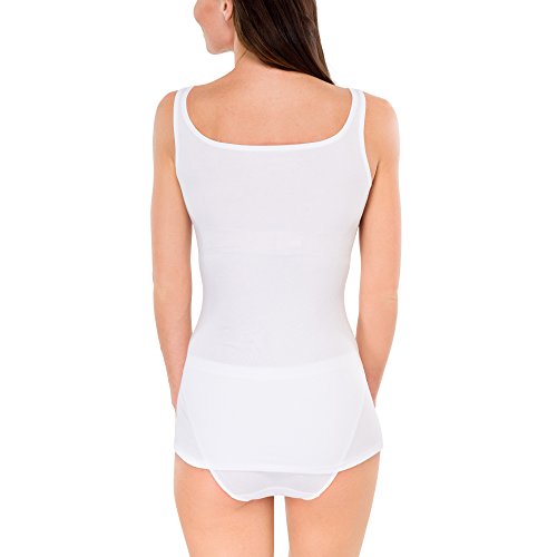 -. Feature : Weißes Träger-Top für Damen / Aus der beliebten Schiesser-Serie "95/5" / Mit rundem 95/5-Metallplättchen zur Zierde / Feine Abschlüsse für höchsten Tragekomfort / In seidigweicher, elastischer Single-Jersey-Qualität