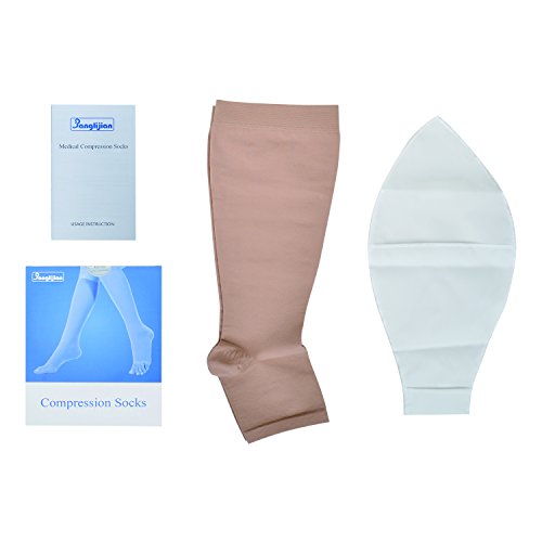 Banglijian Unisex Medical Compression Socks 20-30 mmHg Knee High Open Toe, Toeless Support Socks Compression Stockings for Swelling, Varicose Veins, Edema, Spider Veins and so on (Large, Beige)