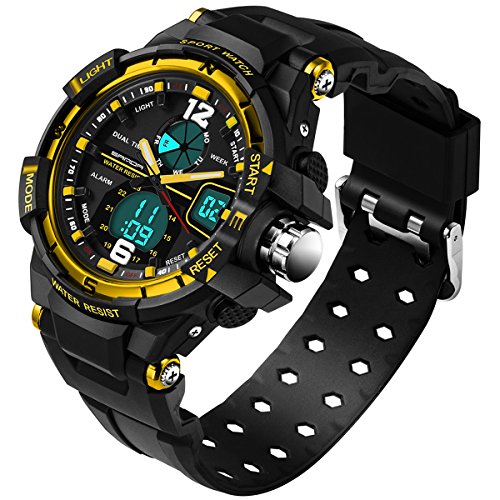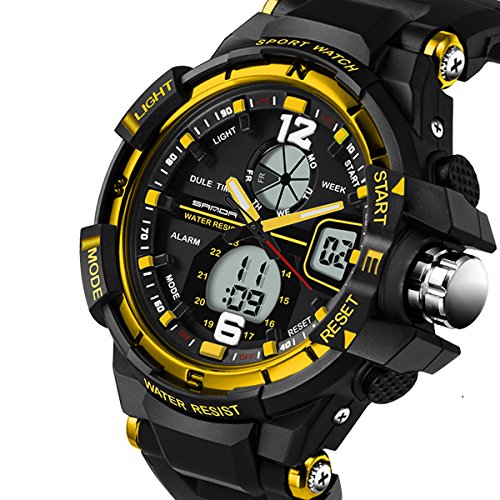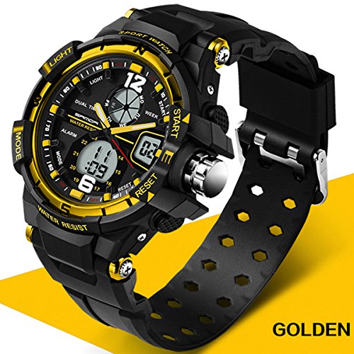 -. Title : Sanda Kids Digital Analog Watch Military Sport Outdoor Big Face Black Wrist Watches Gold