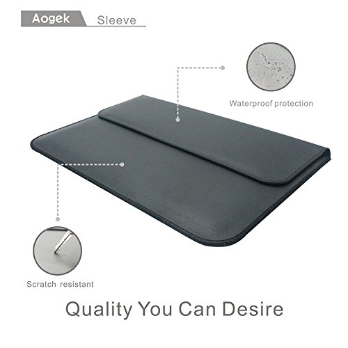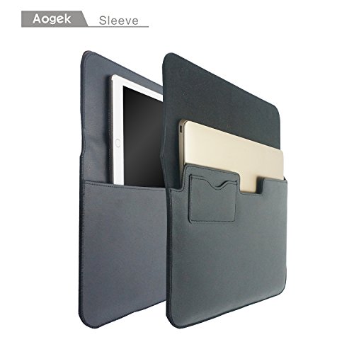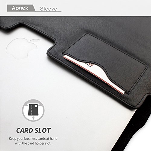 Laptop Sleeve, Aogek High Grade PU Faux Leather sleeve for 11.6-Inch MacBook Air Tablet with Card Slot and Soft Felt Interior with Lifetime Guarantee, BLACK